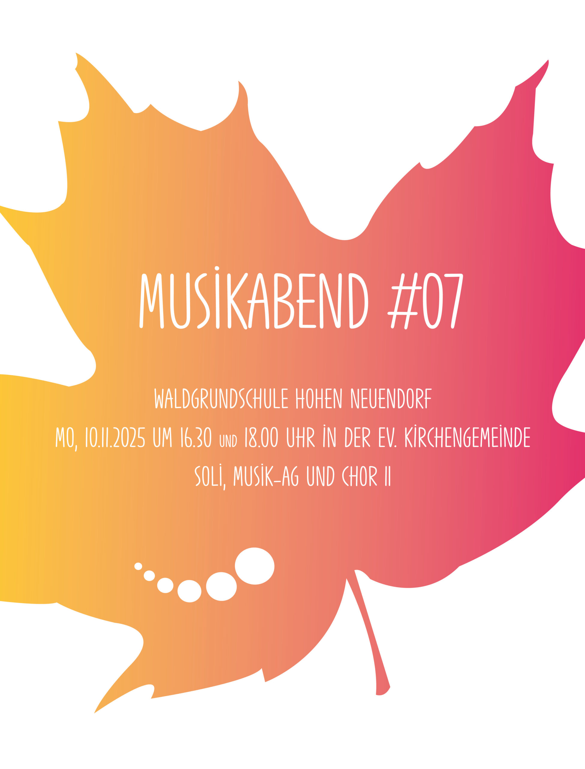 Heute findet unser siebter Musikabend um 16.30 Uhr und 18.00 Uhr in der ev. Kirche Hohen Neuendorf statt.